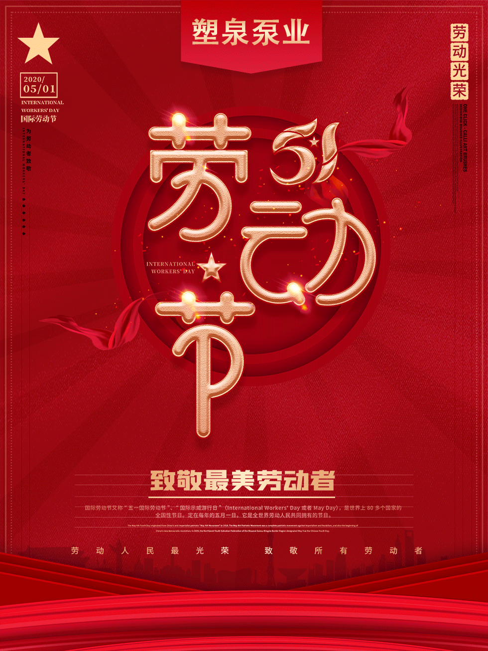 一年一度的五一小長假將至,在這里上海塑泉泵閥科技有限公司全體員工向您及您的家人送出最真摯的祝福,提前祝大家勞動(dòng)節(jié)快樂!